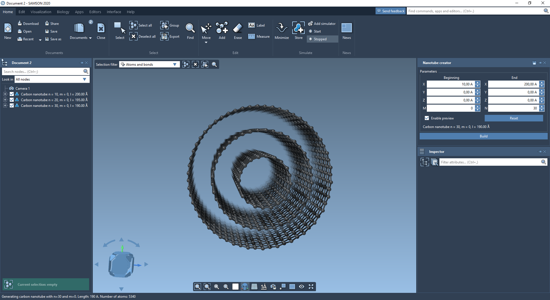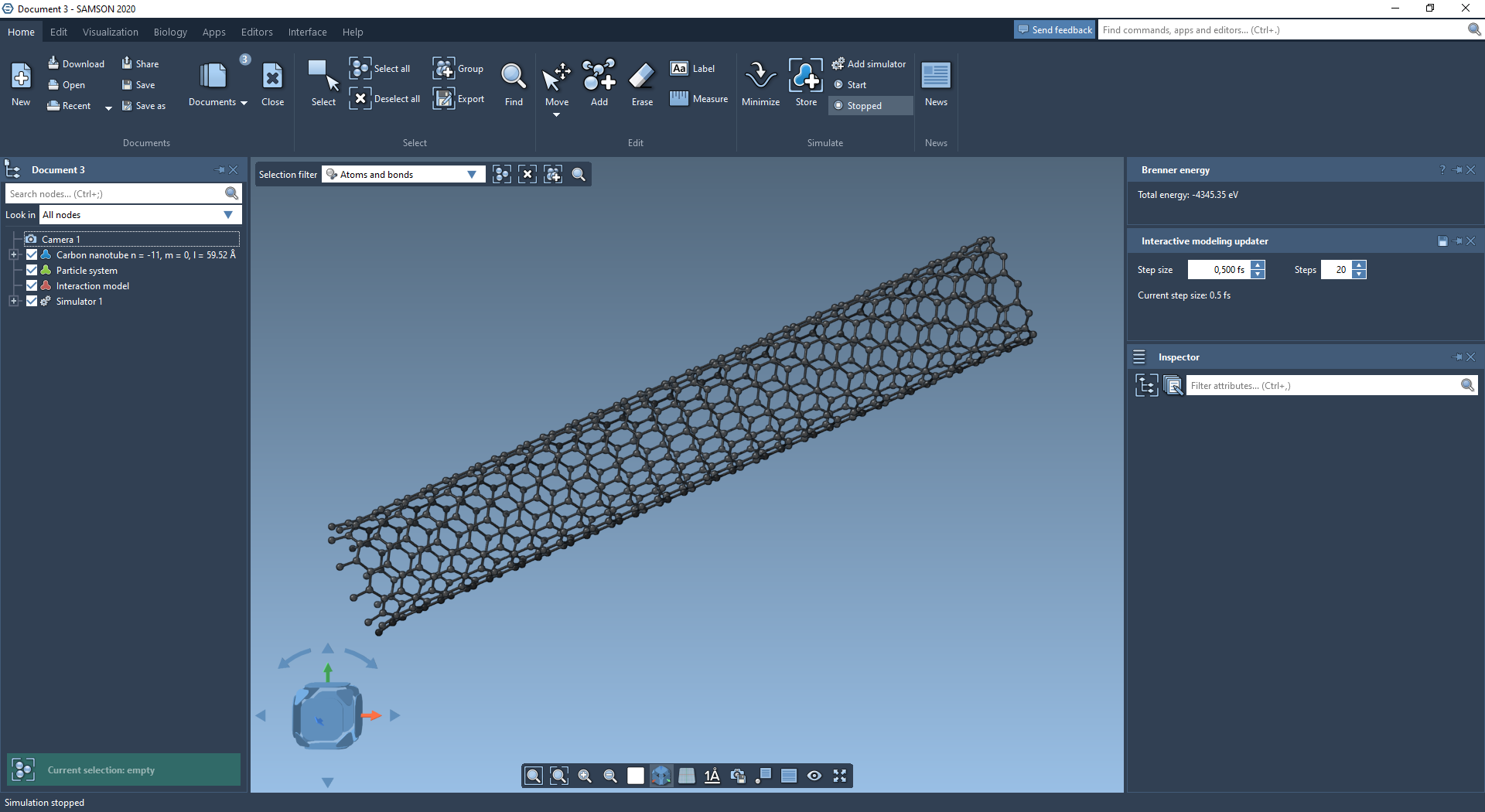 You may then use the Brenner Interaction model to interactively simulate generated nanotubes.