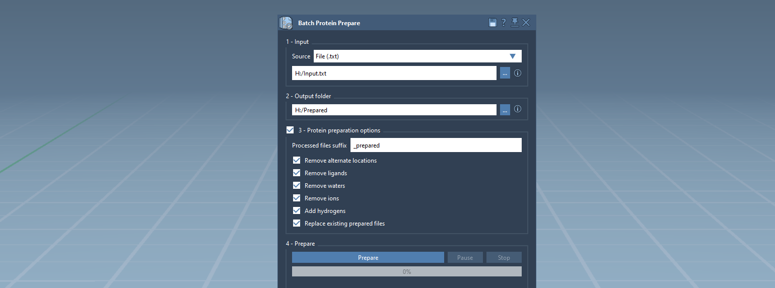 This extension automatically downloads and prepares a batch of proteins based on their PDB codes provided in a file or entered in the interface.