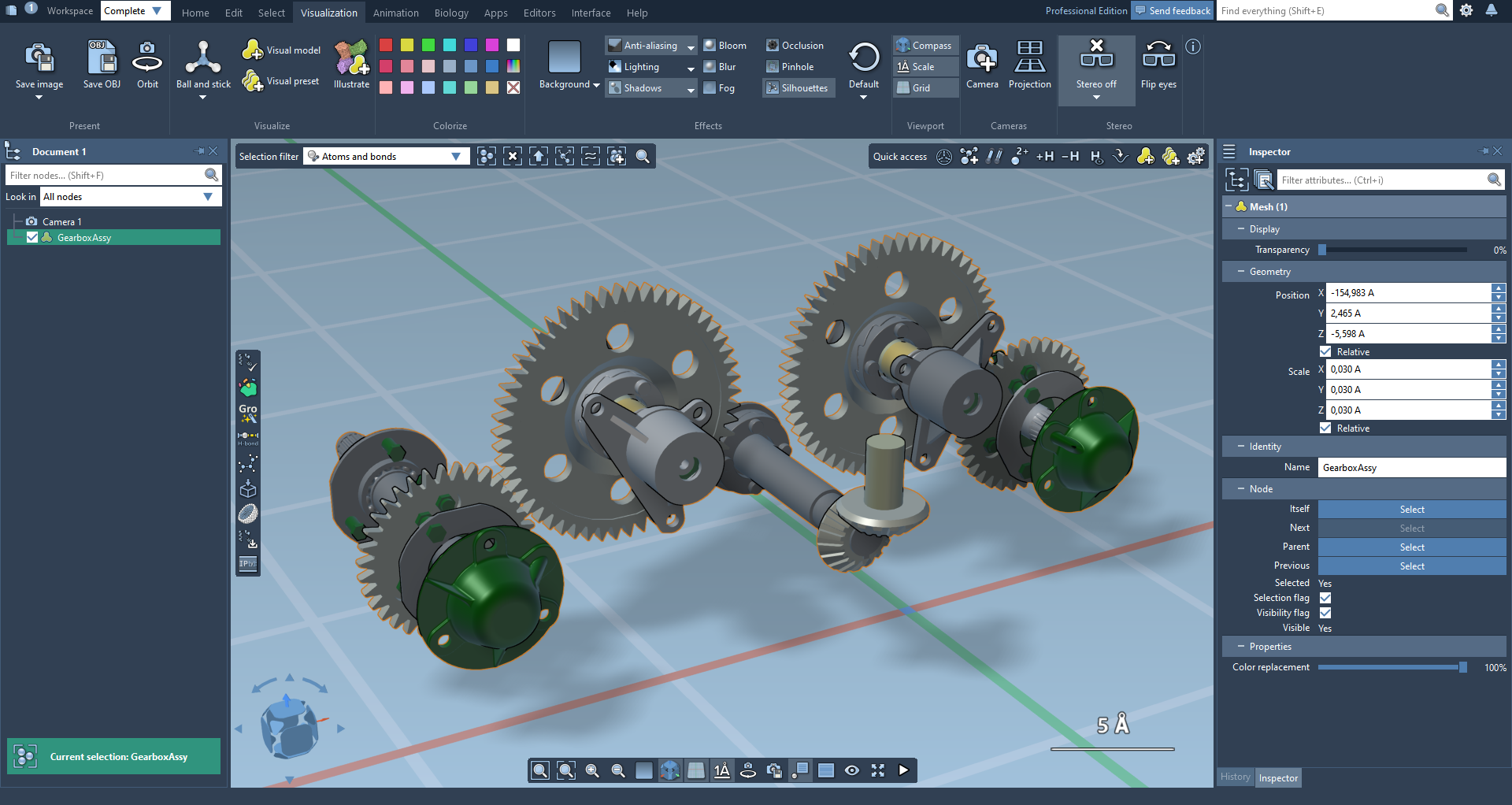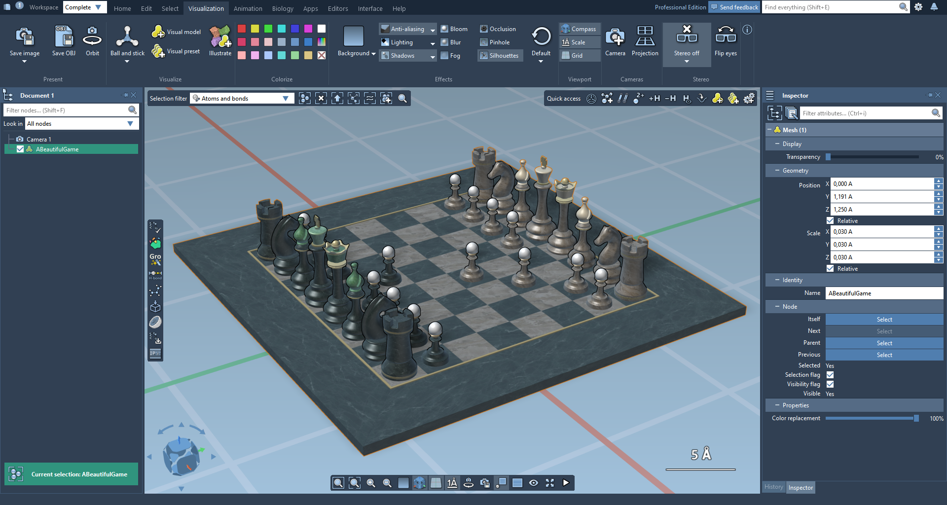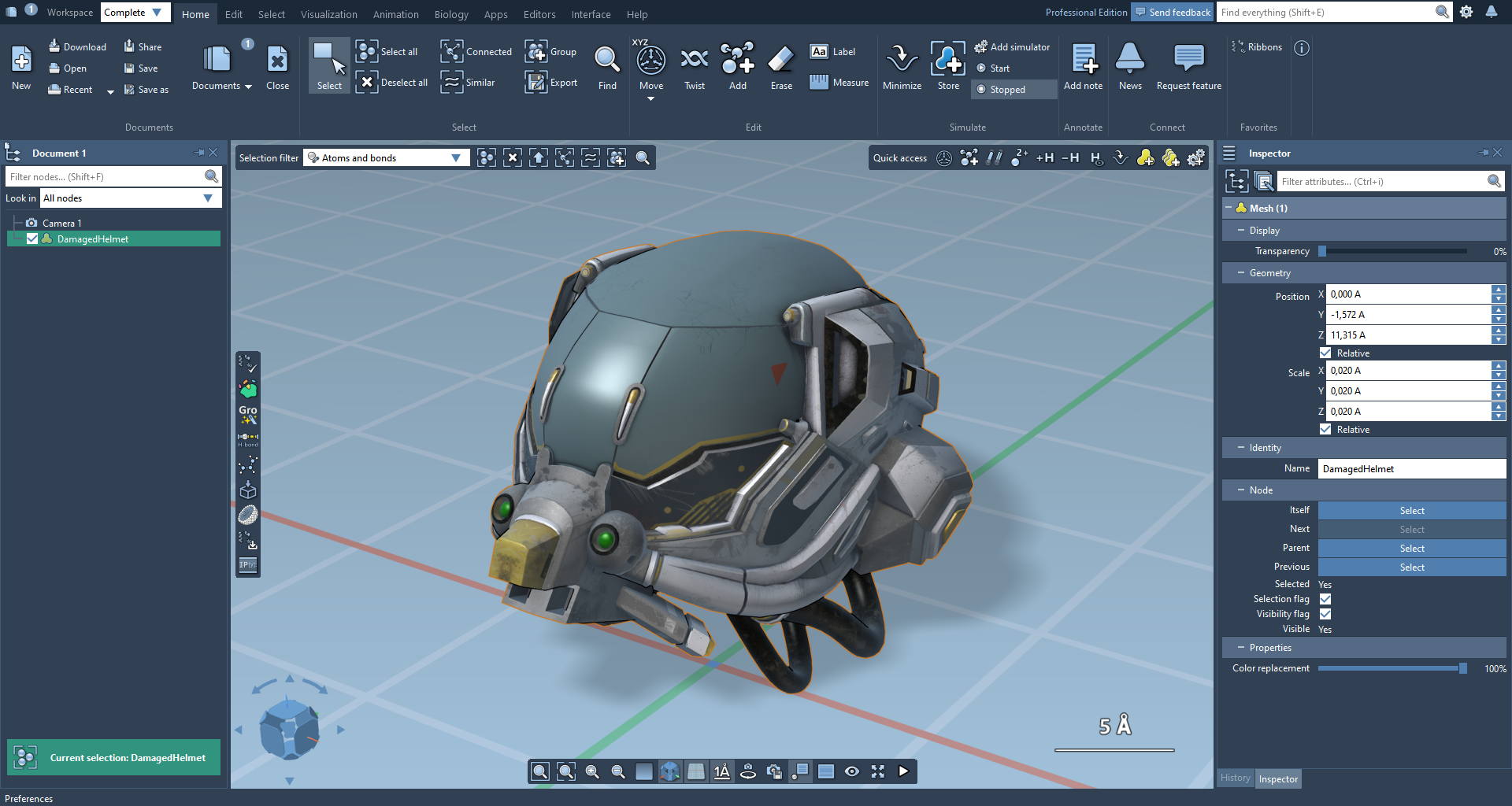 Once in SAMSON, meshes can be moved, rescaled, and recolored.