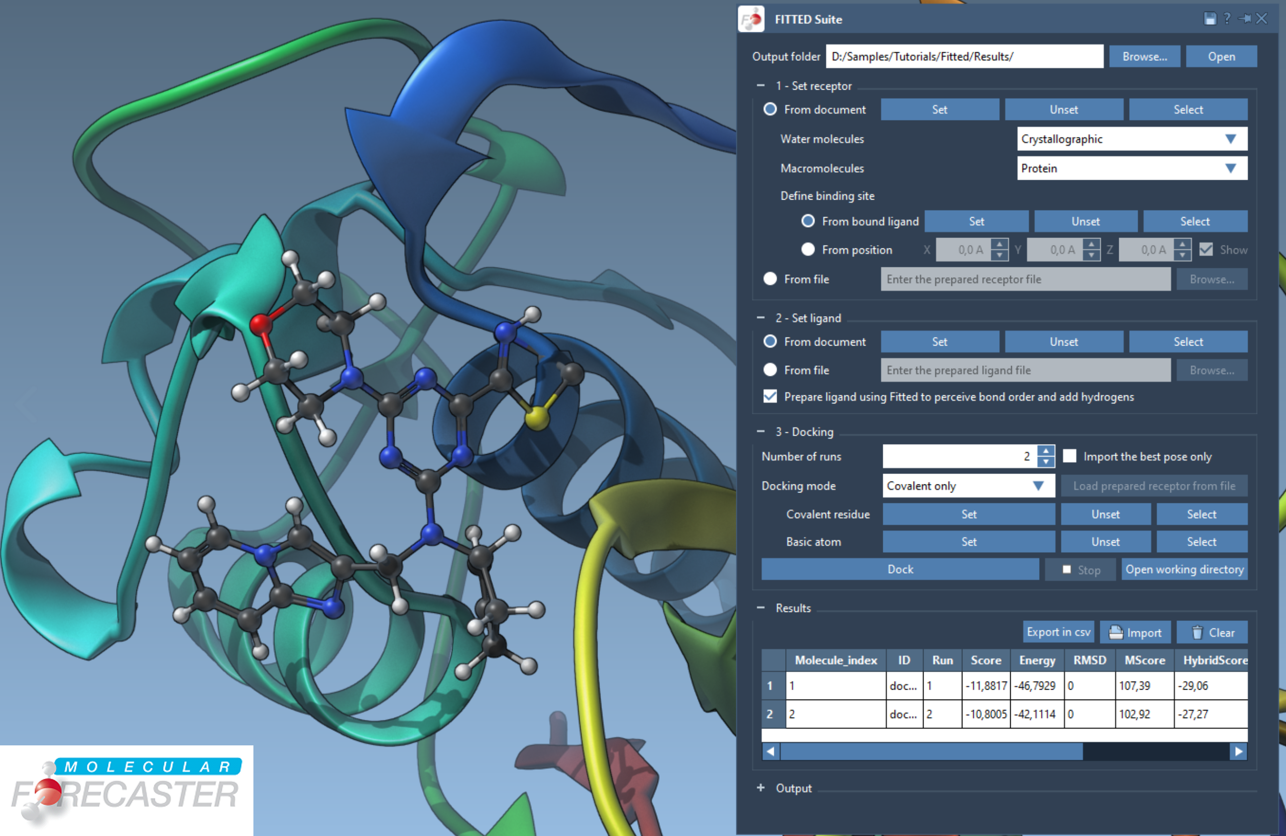 Tutorial: Covalent and non-covalent protein-ligand docking with the Fitted Suite by Molecular Forecaster