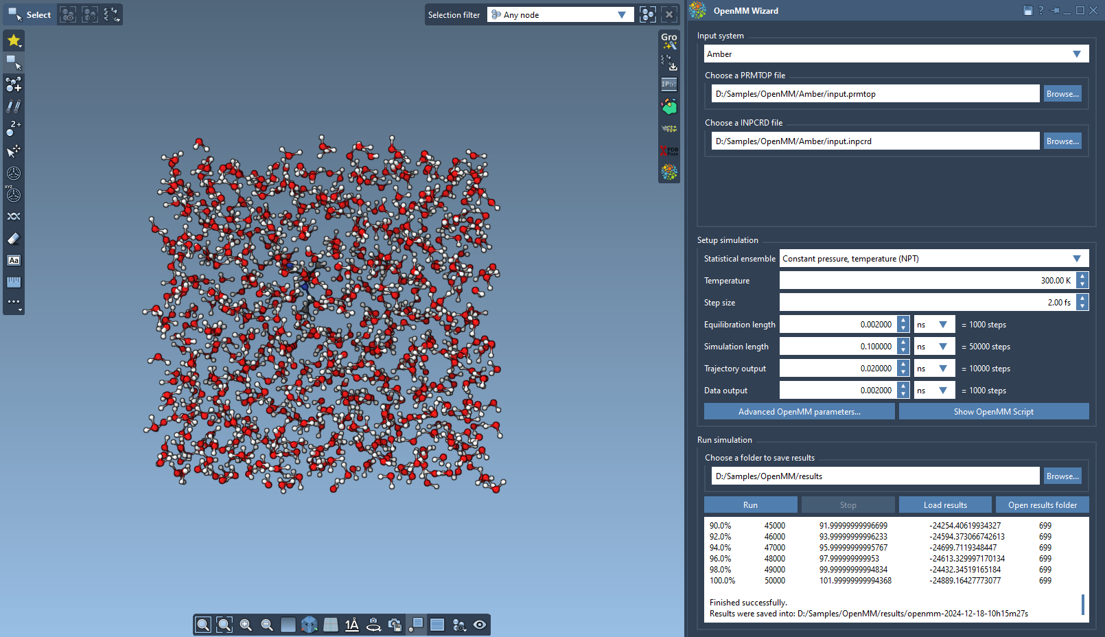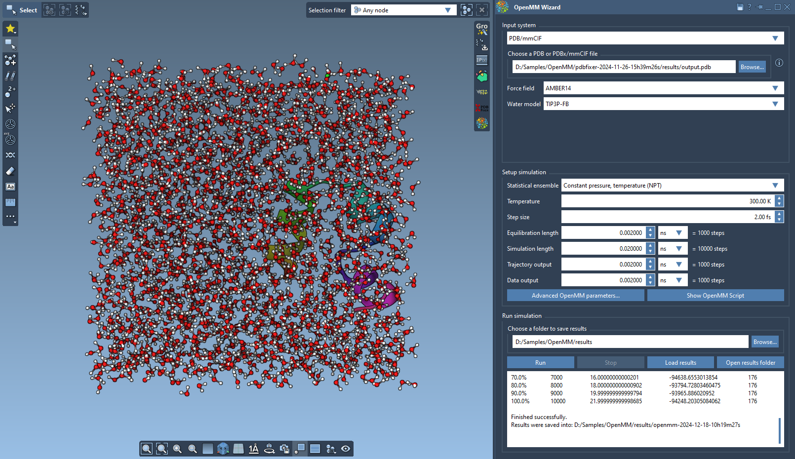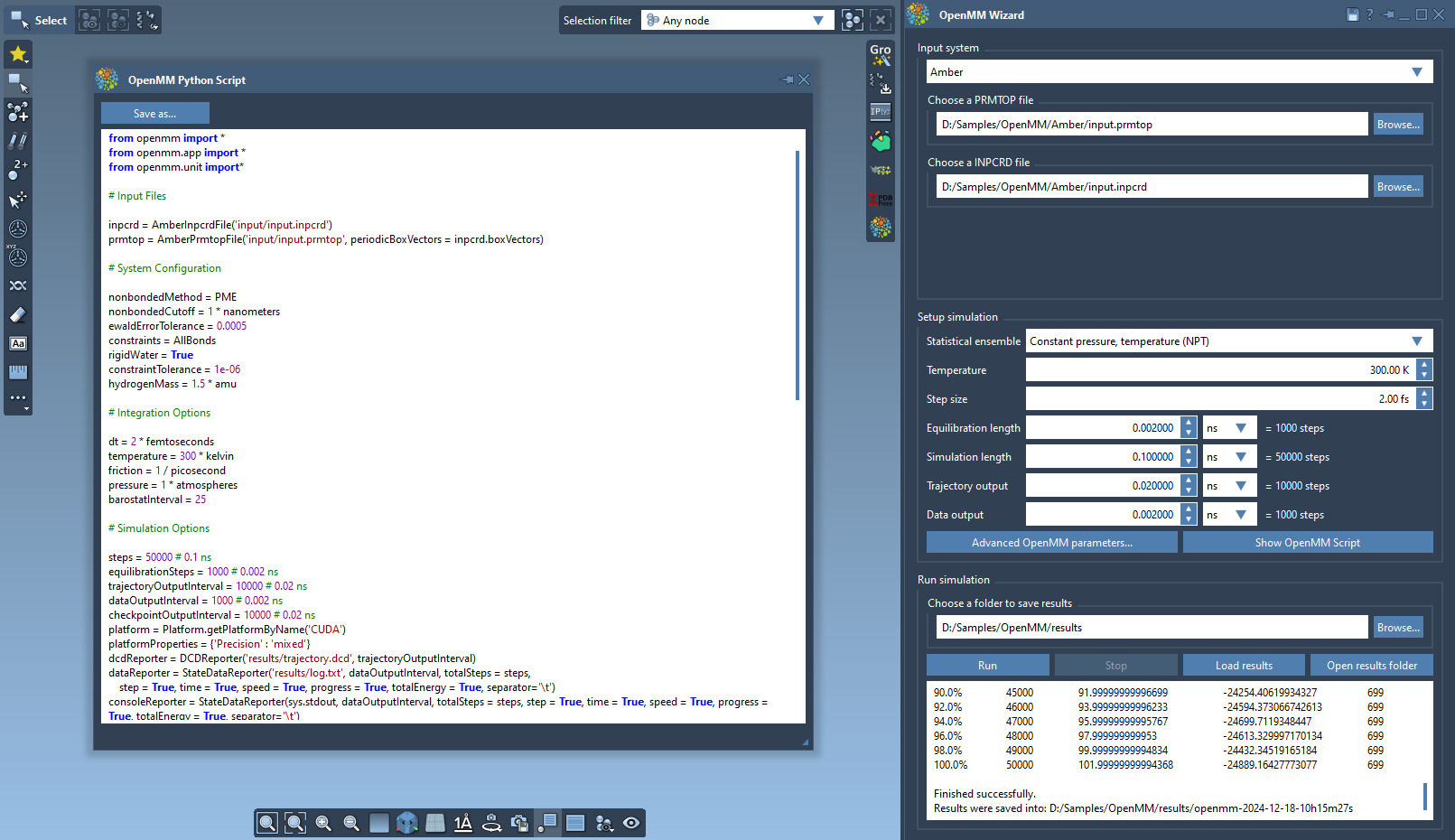 This extension allows you to setup and run simulations with the OpenMM package.