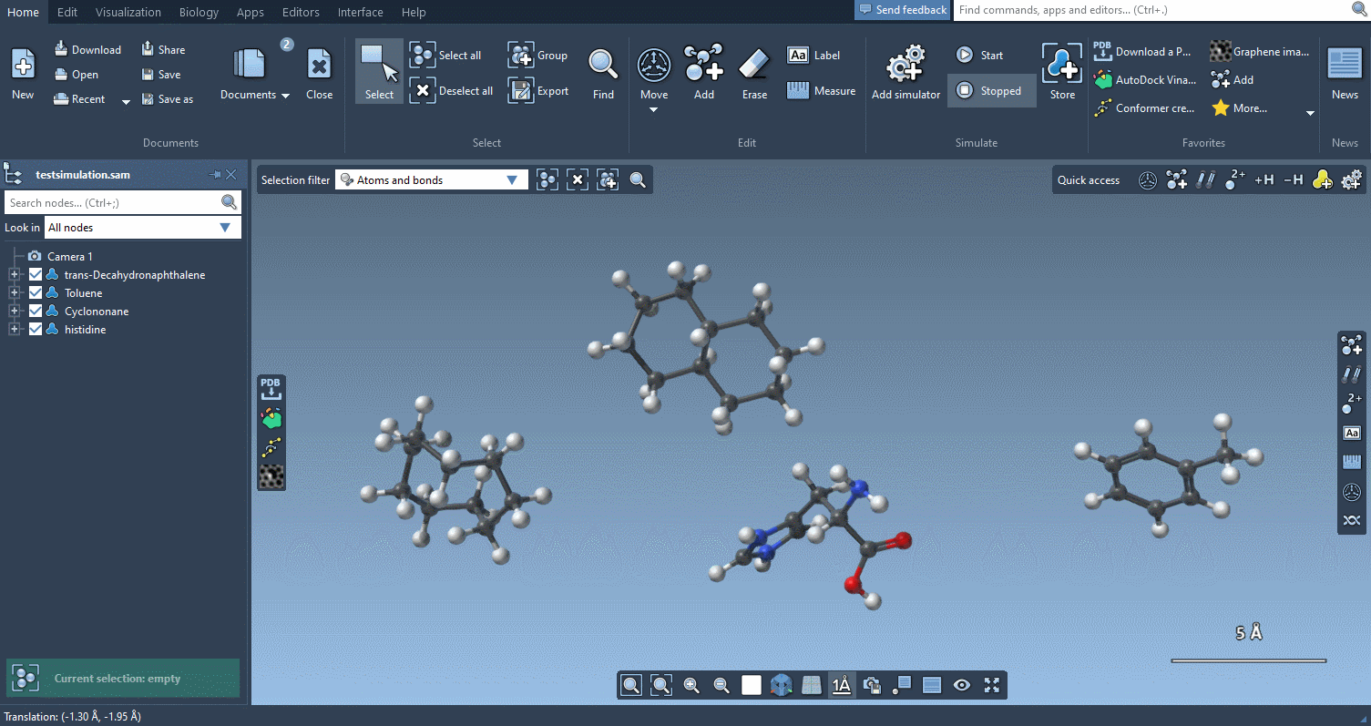 Move editors provide you with precise control over the positions and orientations of molecules.
