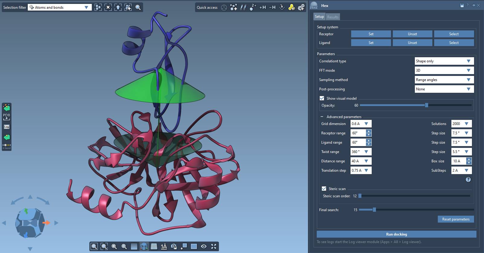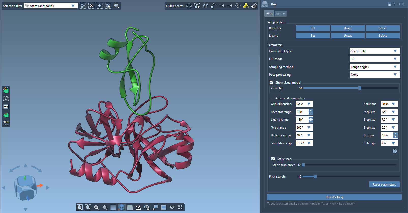 Perform protein sampling and docking using the Hex algorithm developed by Dave Ritchie.