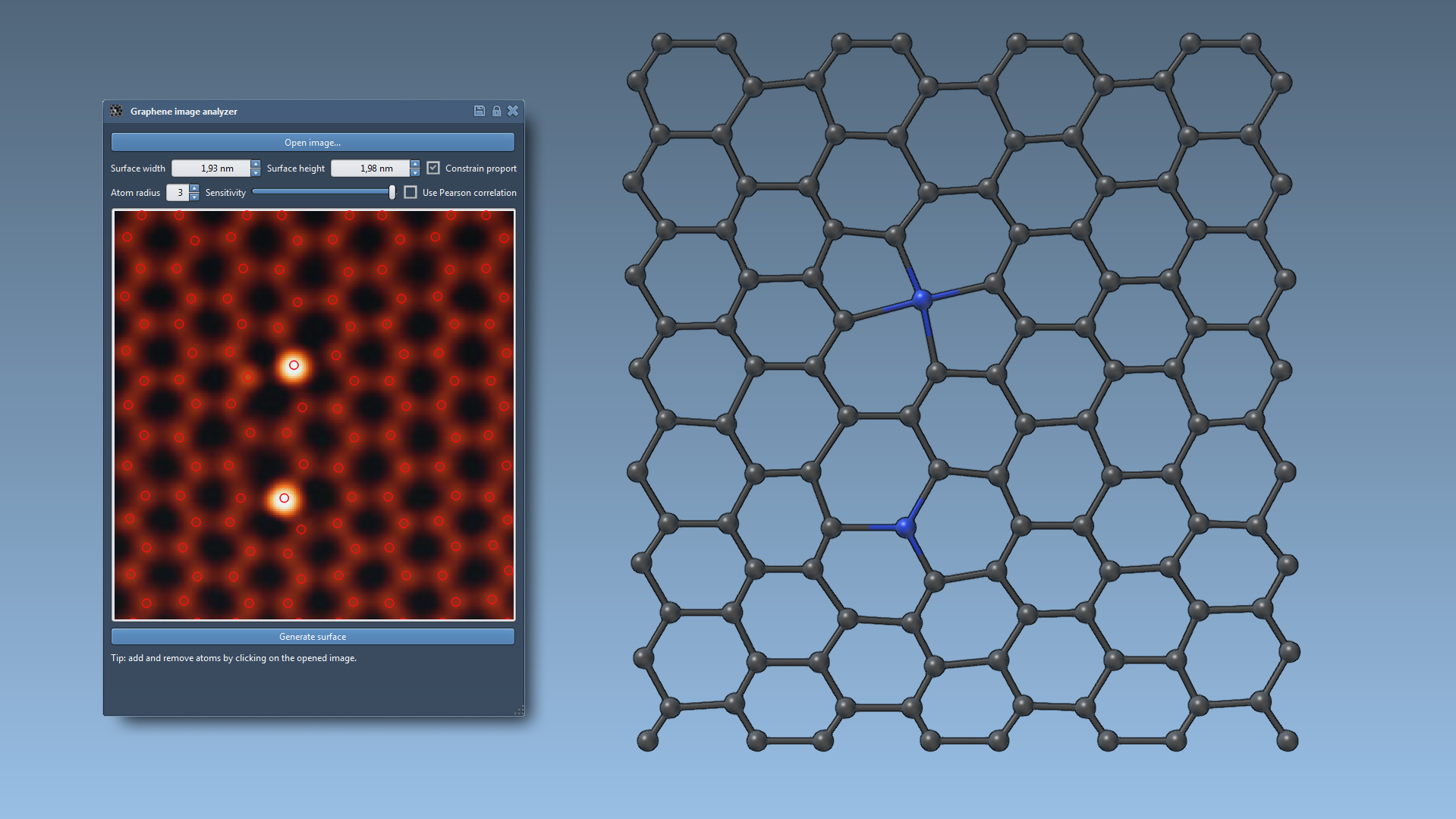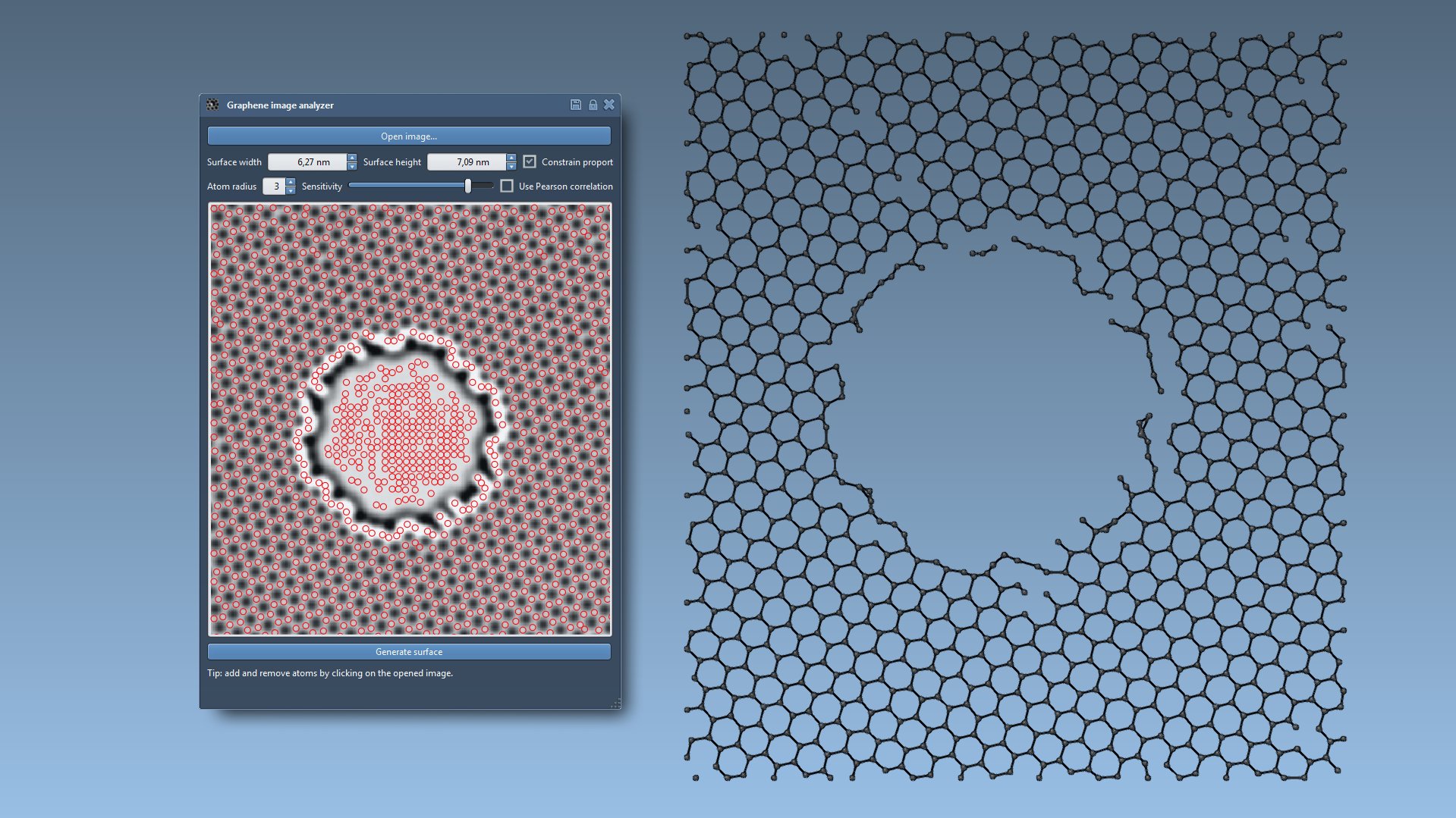 This extension allows you to build a graphene model from a transmission electron microscopy (TEM) image of graphene.
