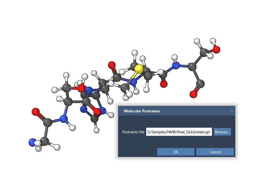 Molecular Restrainer is a powerful tool that enables rapid energy minimization of NMR-derived structures using the Universal Force Field (UFF) and NOE distance restraints.