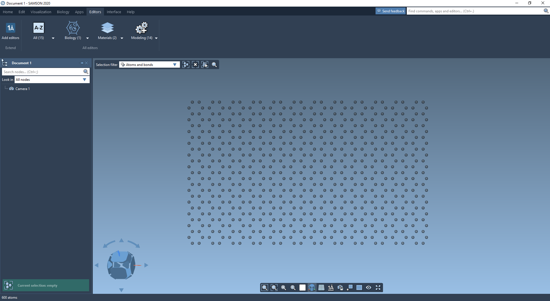 The number of atoms in the sheet is displayed in SAMSON's status bar.